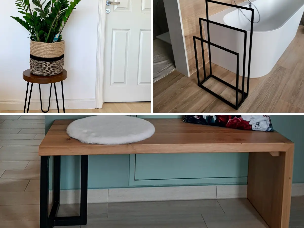 Gewürzregale: Aus Holz und Metall, perfekt für die Aufbewahrung von Gewürzen in der Küche. - Kleiderbügel und Halter: Kleiderbügel: Mit Holzkugeln oder Haken an Metallrohren. Handtuchhalter: Stangen aus Eichenholz mit Metallbefestigung oder Kleiderbügel komplett aus Metall – sie passen perfekt in jedes Badezimmer. Unser Vorschlag ist ein moderner Loft-Handtuchhalter