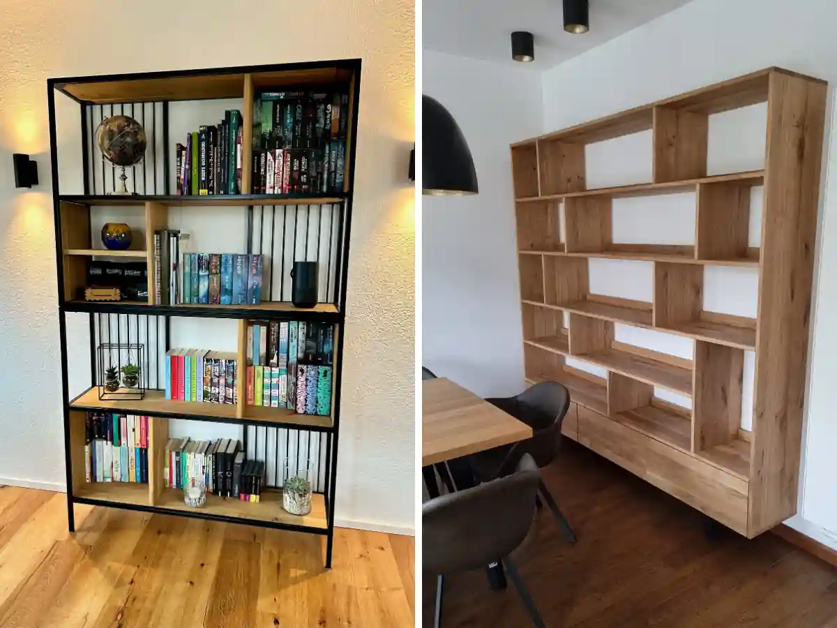 - Bücherregal aus Eiche: Bücherregale gehören zu den beliebtesten Möbelstücken zur Aufbewahrung von Büchern. Sie sind in verschiedenen Größen, Stilen und Konfigurationen erhältlich und können so leicht an Ihre Bedürfnisse angepasst werden. Die Regale können offen oder mit geschlossenen Regalen aus Glas oder Holz sein. Sie können auch freistehend oder an der Wand montiert werden, was perfekt ist, wenn Sie nur wenig Platz haben.