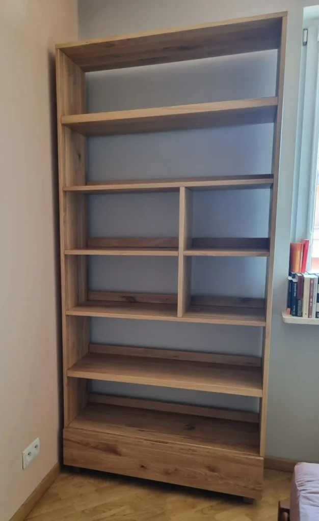 Als Möbelhersteller fertigen wir moderne Wohnzimmerregale, Kommoden, Vitrinen und Tische nach Maß. Die manuelle Herstellung von Möbeln aus massivem Eichenholz ermöglicht uns eine vollständige Personalisierung und individuelle Lösungen. Wenn Sie nach originellen Formen und Möbeln suchen, die ein stimmiges Ganzes mit Ihrem Zuhause bilden, sind Sie hier genau richtig! Unser Angebot umfasst Eichenmöbel, die zu jedem Budget und jedem Zuhause passen. Wählen Sie Eichenmöbel im modernen Stil.