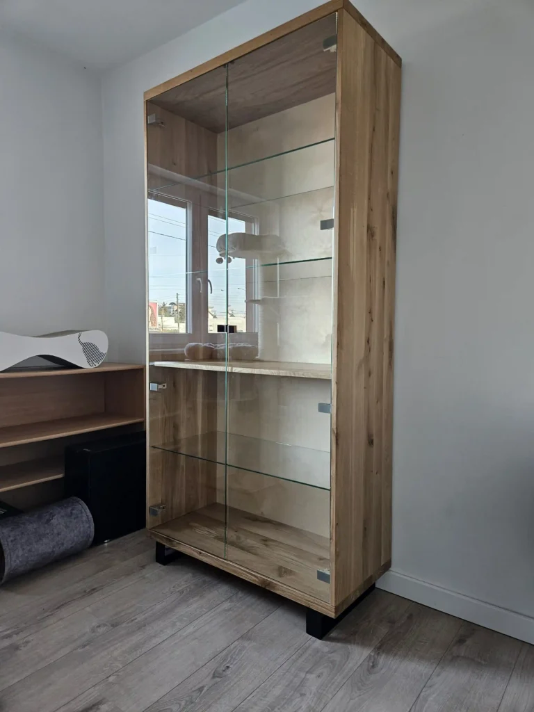 - Stilvolles Design: Verglaste Vitrinen aus Holz bestehen oft aus edlen Materialien wie Eiche, Walnuss oder Mahagoni, die dem Raum ein edles Aussehen und Stil verleihen.