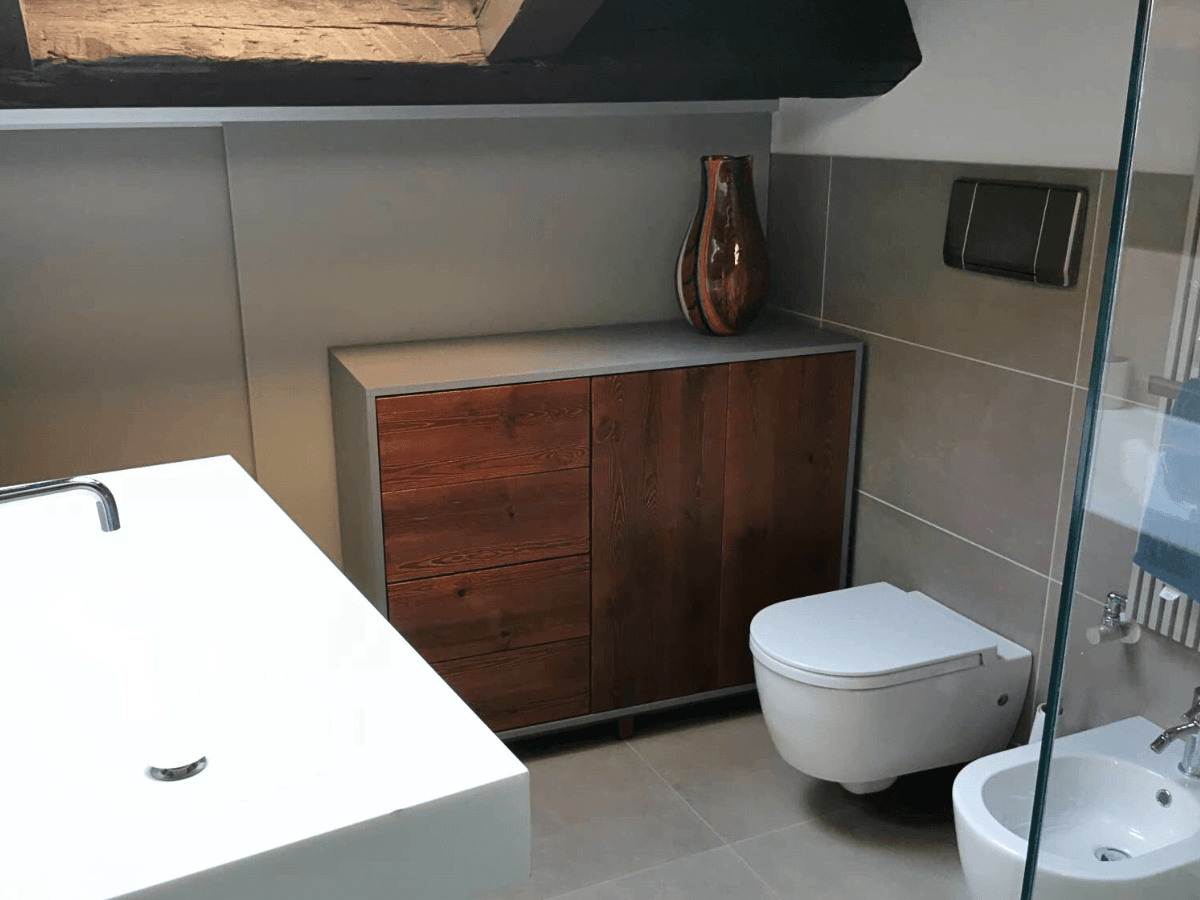 Holzmöbel können im Badezimmer verwendet werden, aber es lohnt sich, einige Vorsichtsmaßnahmen zu treffen, um ihre Haltbarkeit und Qualität zu erhalten. Holz ist ein Material, das auf wechselnde Feuchtigkeits- und Temperaturbedingungen reagiert, die sein Aussehen und seine Haltbarkeit beeinträchtigen können. Denken Sie daran, dass trotz dieser Vorsichtsmaßnahmen Badezimmermöbel aus Holz regelmäßig gewartet werden müssen, um ihren Zustand zu erhalten. Kontrollieren und reinigen Sie Holzmöbel regelmäßig, um mögliche Feuchtigkeitsprobleme zu vermeiden. Hier sind einige Tipps für die Verwendung von Holzmöbeln im Badezimmer: