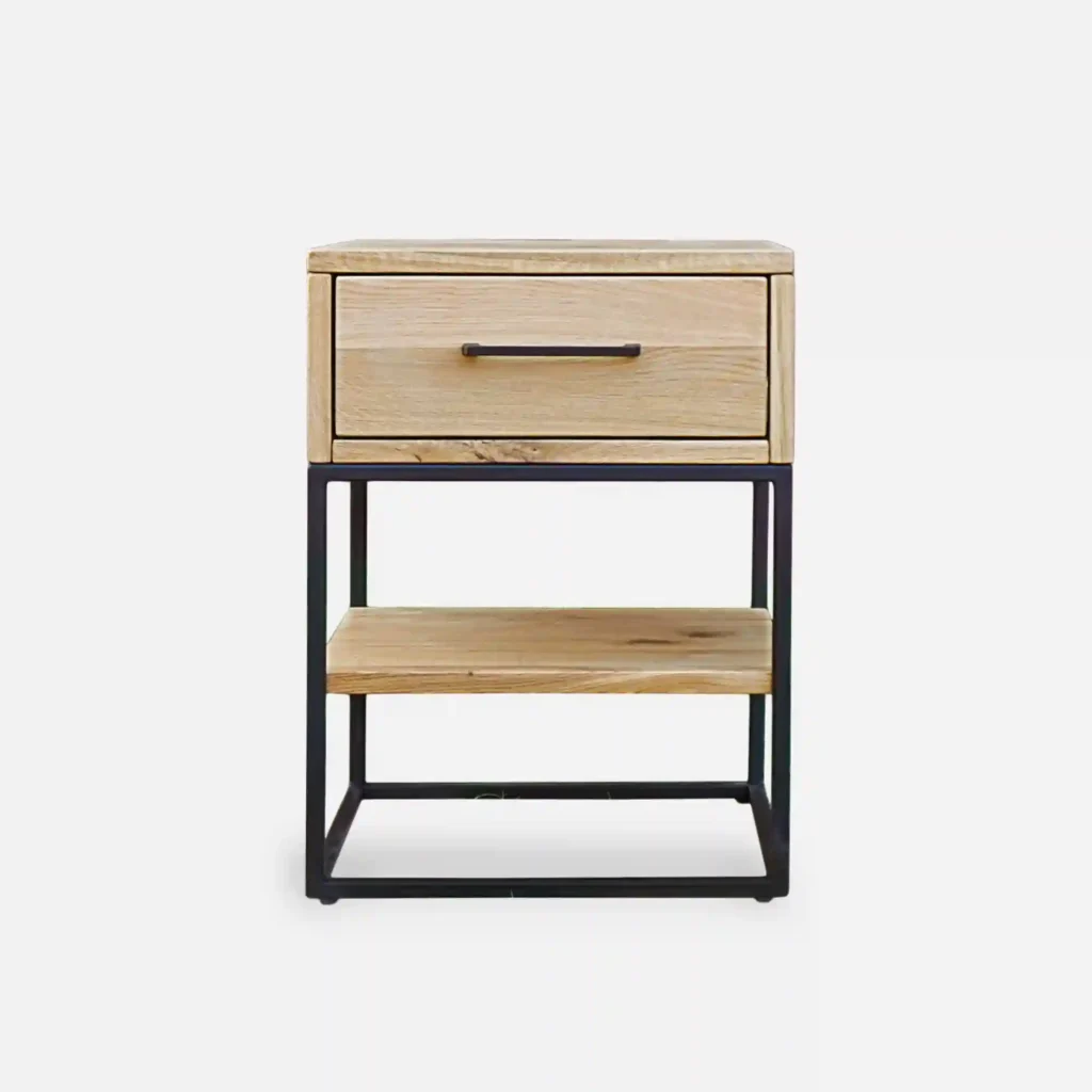 Eichen-Nachttisch im industriellen Stil mit Schublade und Regal für das Schlafzimmer MERIS I