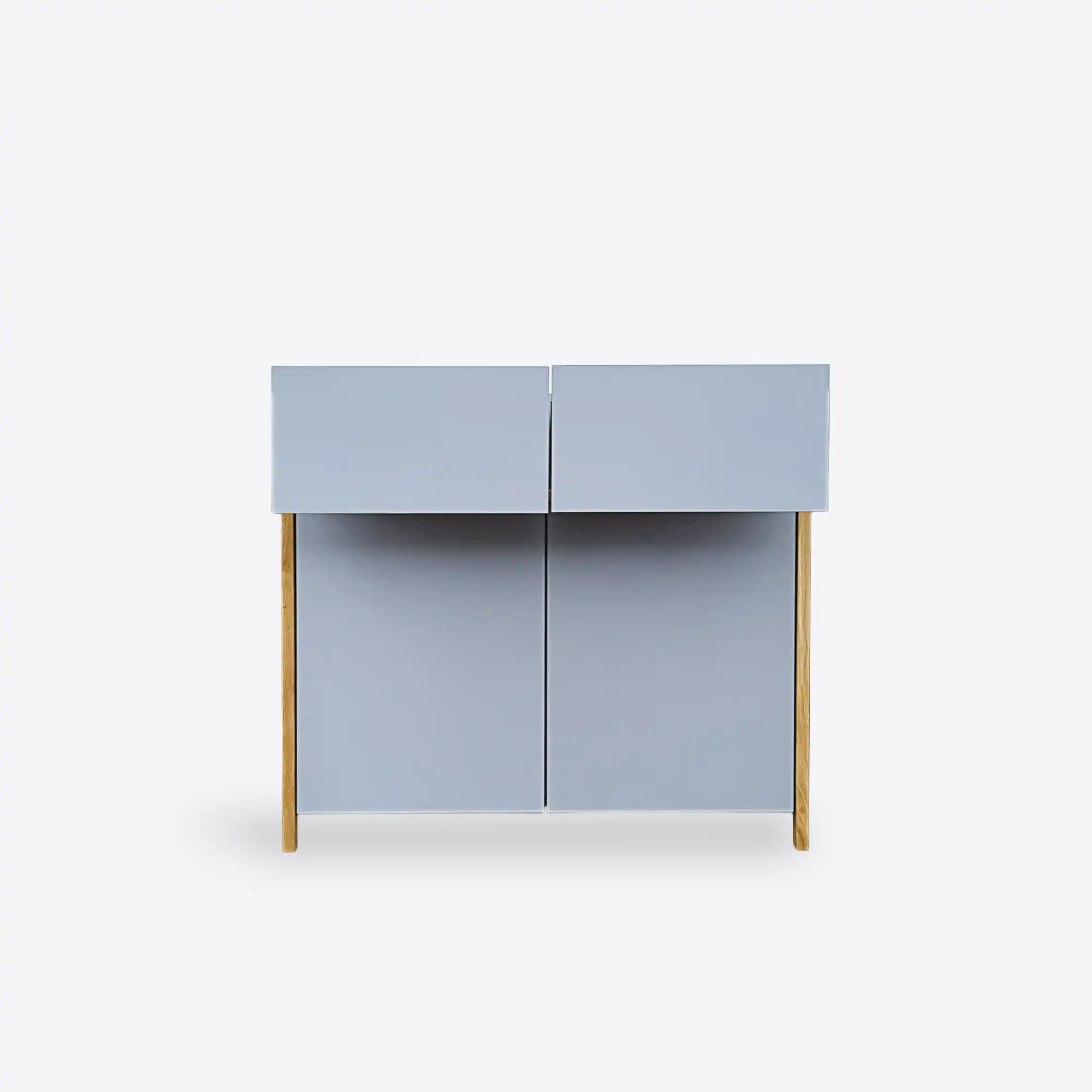 Designer moderne Kommode ins Wohnzimmer BOSTON ist eine ideale Wahl für alle Räume, die von skandinavischem oder modernem Stil inspiriert sind. Der Korpus und die Fronten sind aus strapazierfähigem und pflegeleichtem laminiertem Holzwerkstoff gefertigt, während die Beine aus massiver Eiche sind. Die BOSTON Kommode im unteren Teil verfügt über zwei große Schränke mit Regalböden und zwei Schubladen. Dank dieser Anordnung ist das Möbelstück äußerst praktisch und funktional und trägt zur Ordnung im Raum bei. Die BOSTON Wohnzimmerkommode betont durch ihr einfaches Design und ihre elegante Farbgebung die Einrichtung jeder Raumgestaltung.