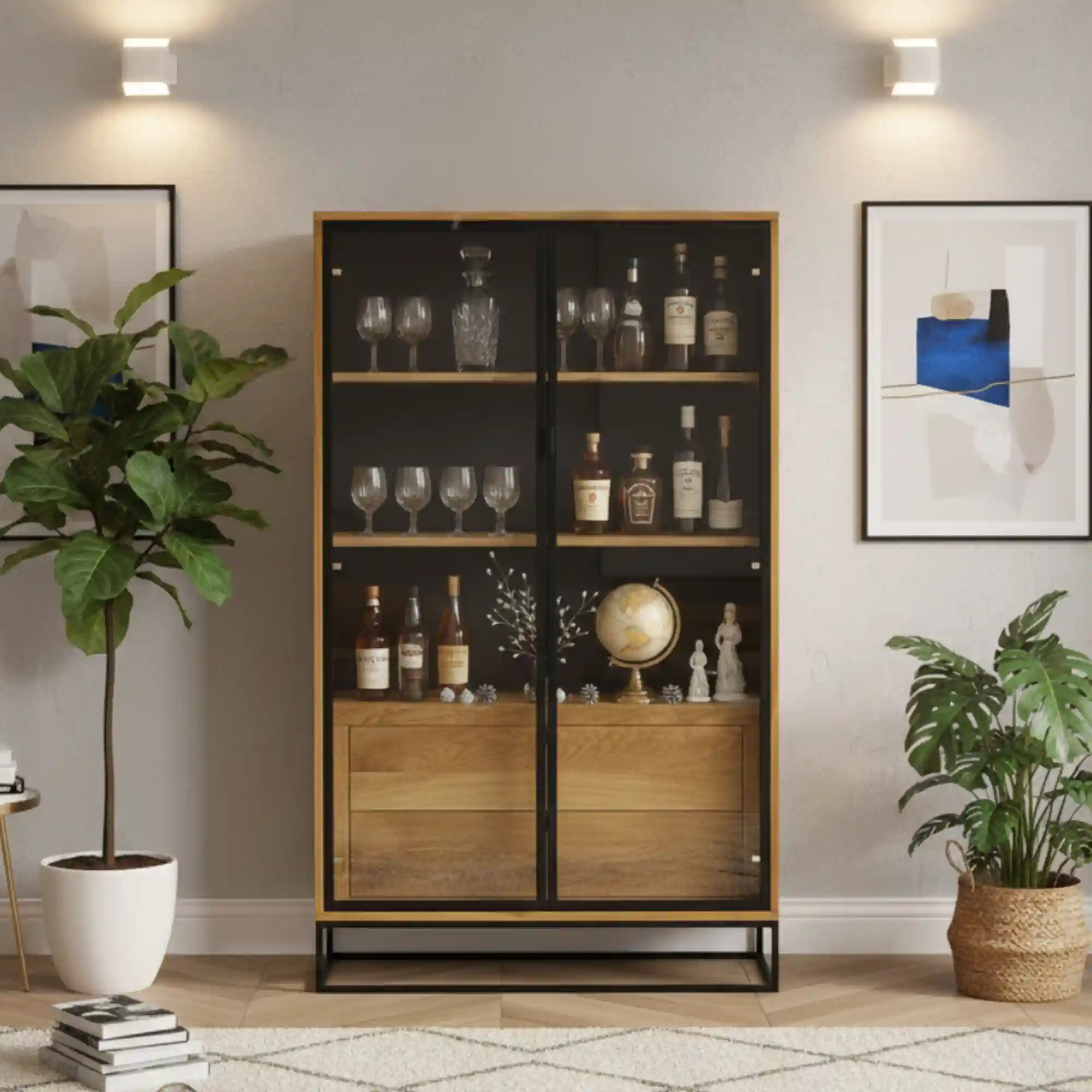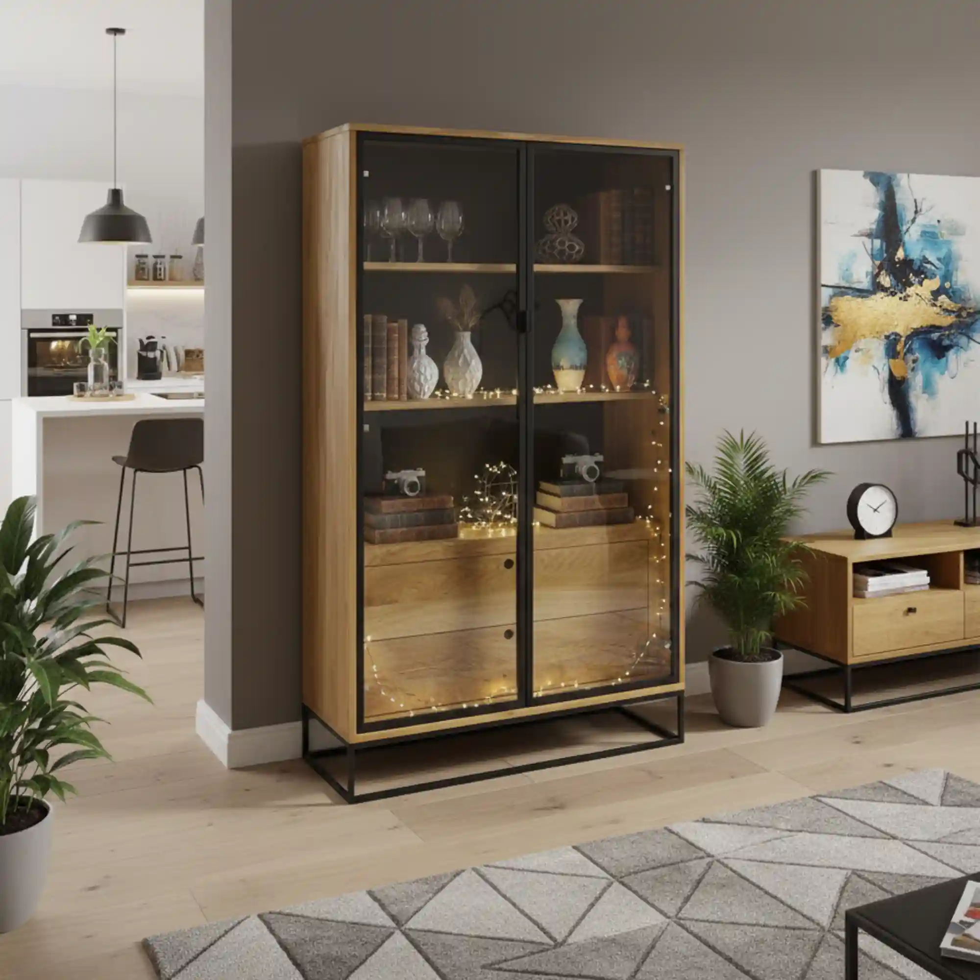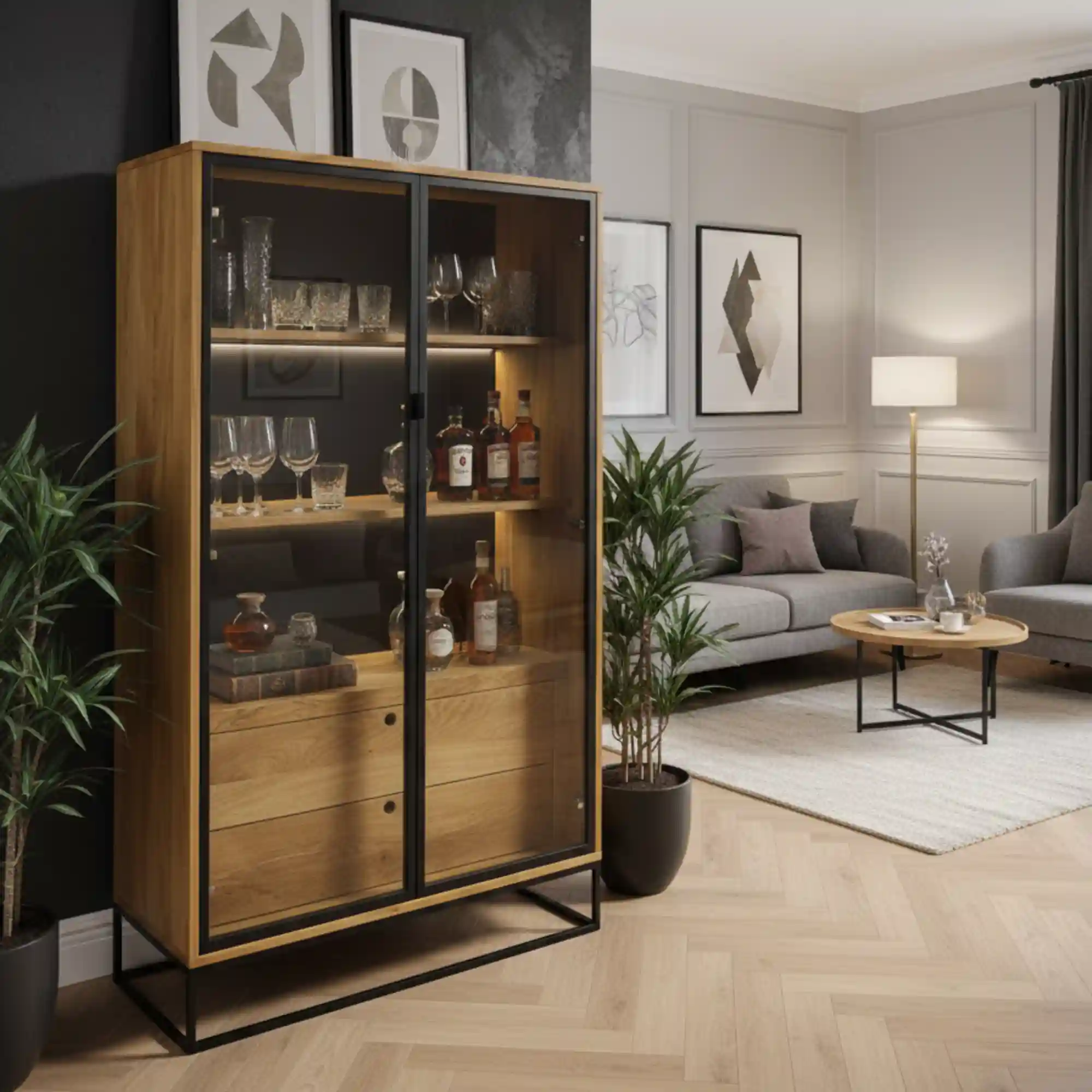 Eiche Vitrine Loft aus Massivholz für das Wohnzimmer MERIS II