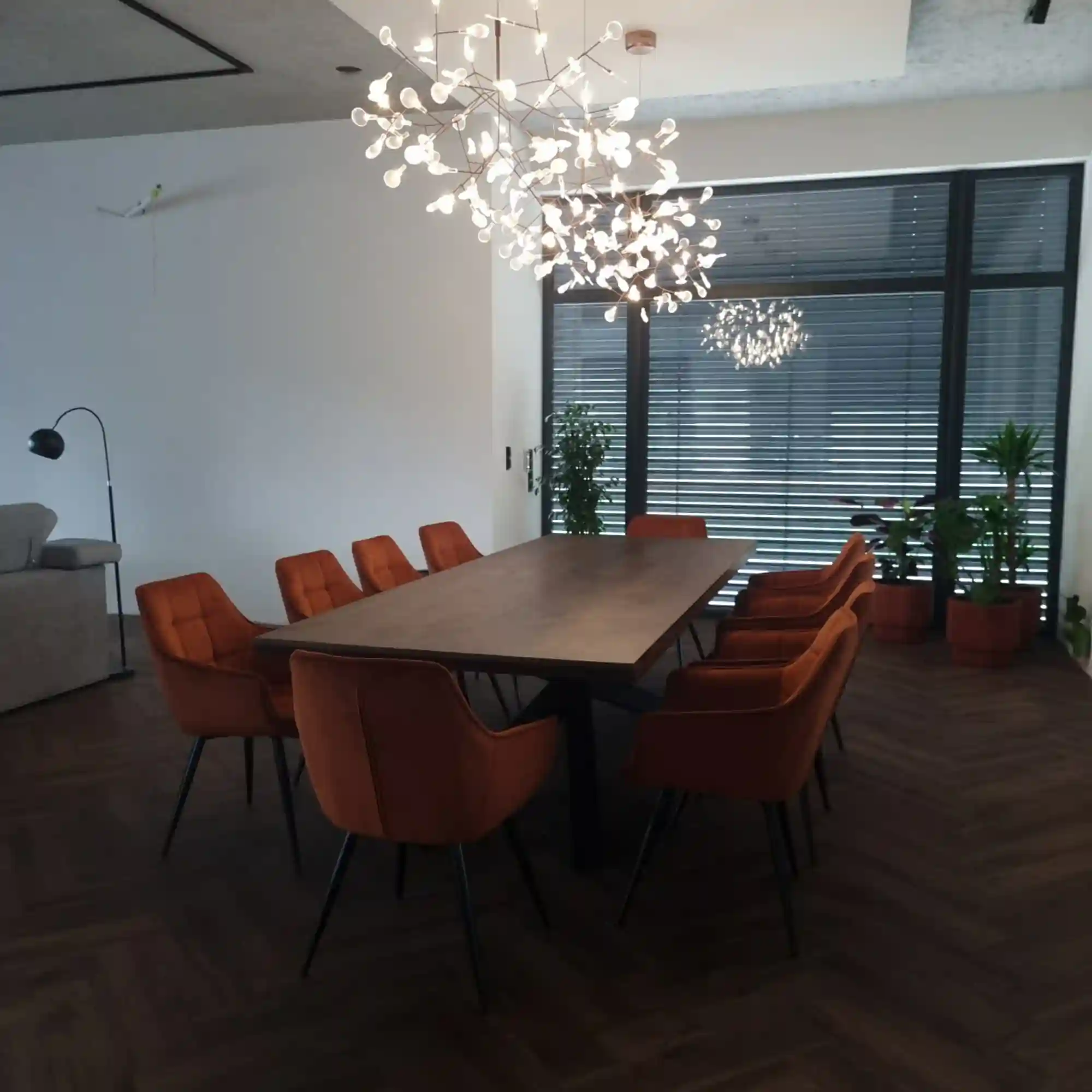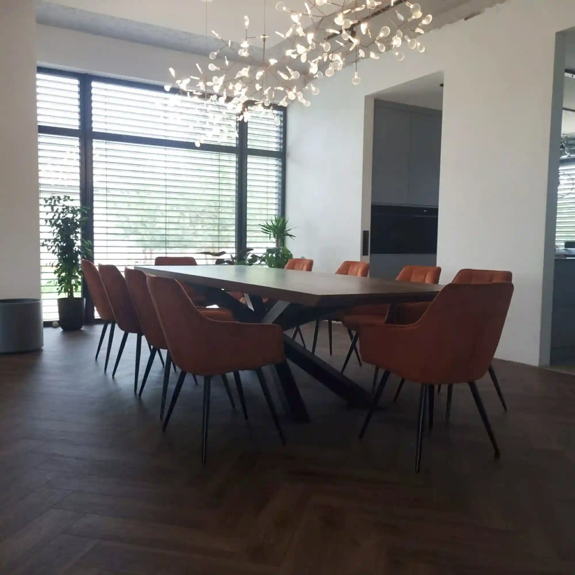 Ein massiver Eichentisch ist das Herzstück eines jeden Hauses und verleiht der Einrichtung Charakter und einen einzigartigen Stil. Wenn Sie sich für einen Tisch mit einer Eichenplatte entscheiden, sollten Sie überlegen, welche Beine am besten in die Einrichtung passen – Metall, das den modernen und industriellen Stil unterstreicht, oder Holz, das der Einrichtung Wärme und klassischen Charme verleiht. Unabhängig davon, wofür Sie sich entscheiden, zeichnen sich Eichentische nicht nur durch ihre Zweckmäßigkeit und Funktionalität aus, sondern auch durch ihr einzigartiges Aussehen, das durch seine natürliche Schönheit besticht. Die modernen Eichentische von RaWood, die vollständig aus ausgewähltem massivem Eichenholz gefertigt werden, zeichnen sich durch ihre Langlebigkeit und Eleganz aus. Der Tisch im Industriestil ist sowohl für das Esszimmer als auch für den Konferenzraum geeignet und verbindet modernes Design mit Funktionalität. Sein rauer, aber eleganter Look, der auf der Kombination von Naturholz und Metallelementen beruht, passt zu einer Vielzahl von Einrichtungsstilen – von Loft bis Minimalismus. Durch die Möglichkeit, die Abmessungen, die Oberfläche der Platte und die Farbe des Untergestells anzupassen, kann der Tisch perfekt auf die Bedürfnisse des Benutzers und den Charakter des Raums abgestimmt werden. Ein weiterer Vorteil ist die Möglichkeit, den Tisch mit USB-Anschlüssen und Steckdosen auszustatten, die seine Funktionalität in Büro- oder Konferenzräumen erhöhen. So besticht der Tisch nicht nur durch sein modernes Design, sondern erleichtert auch den Arbeitsalltag durch die Möglichkeit, elektronische Geräte bequem anzuschließen. Er ist ein praktisches und zugleich ästhetisches Möbelstück, das sowohl den Bedürfnissen von privaten als auch von gewerblichen Räumen gerecht wird..