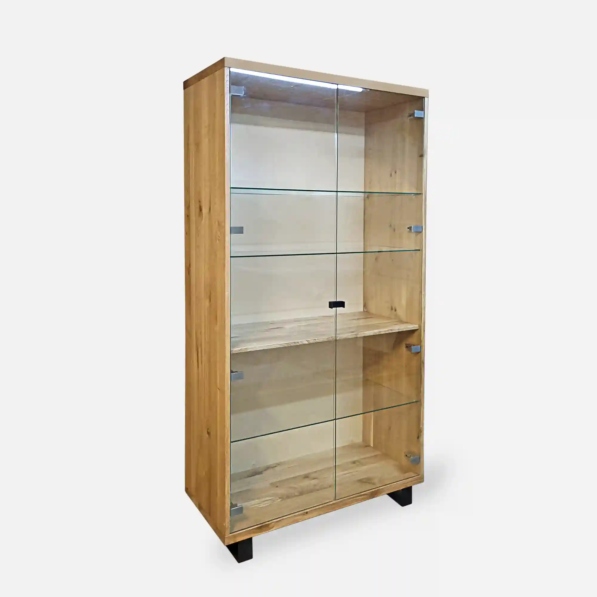 Eichenvitrinen, auch Glasvitrinen, gibt es in verschiedenen Größen und Formen, von rechteckig bis quadratisch. So können Sie sie an unterschiedliche Räume und Nutzerbedürfnisse anpassen. Bei RaWood Furniture können Sie beliebige Glasvitrinen aus dem Sortiment wählen und ihr Aussehen verändern. Sie haben Einfluss auf die Größe/Farbe der Möbel und auch auf die Innenausstattung. Sie können eine Eichenvitrine mit zusätzlichen Einlegeböden bestellen. Sie können auch zusätzliche Elemente wählen, wie z.B. eine LED-Beleuchtung, die die ausgestellten Gegenstände hervorhebt. Sie können die Vitrine auch mit Innenschubladen oder einem Schrank ausstatten. Eine Wandvitrine eignet sich gut für ein kleines Wohn- oder Arbeitszimmer. Glasvitrinen mit einem Korpus aus Eichenholz sind sehr beliebt, weil sie in jedem Raum sehr attraktiv aussehen. Wenn Sie von einer Glasvitrine träumen, die anders ist als die anderen, schreiben Sie uns über das Formular “Vitrine anpassen”. Unser Team wird versuchen, Ihren Traum wahr werden zu lassen. Schauen Sie sich unsere Produkte auf www.rawood.de an und entscheiden Sie sich für eine Holzvitrine, denn sie ist die perfekte Lösung für Ihr Interieur.