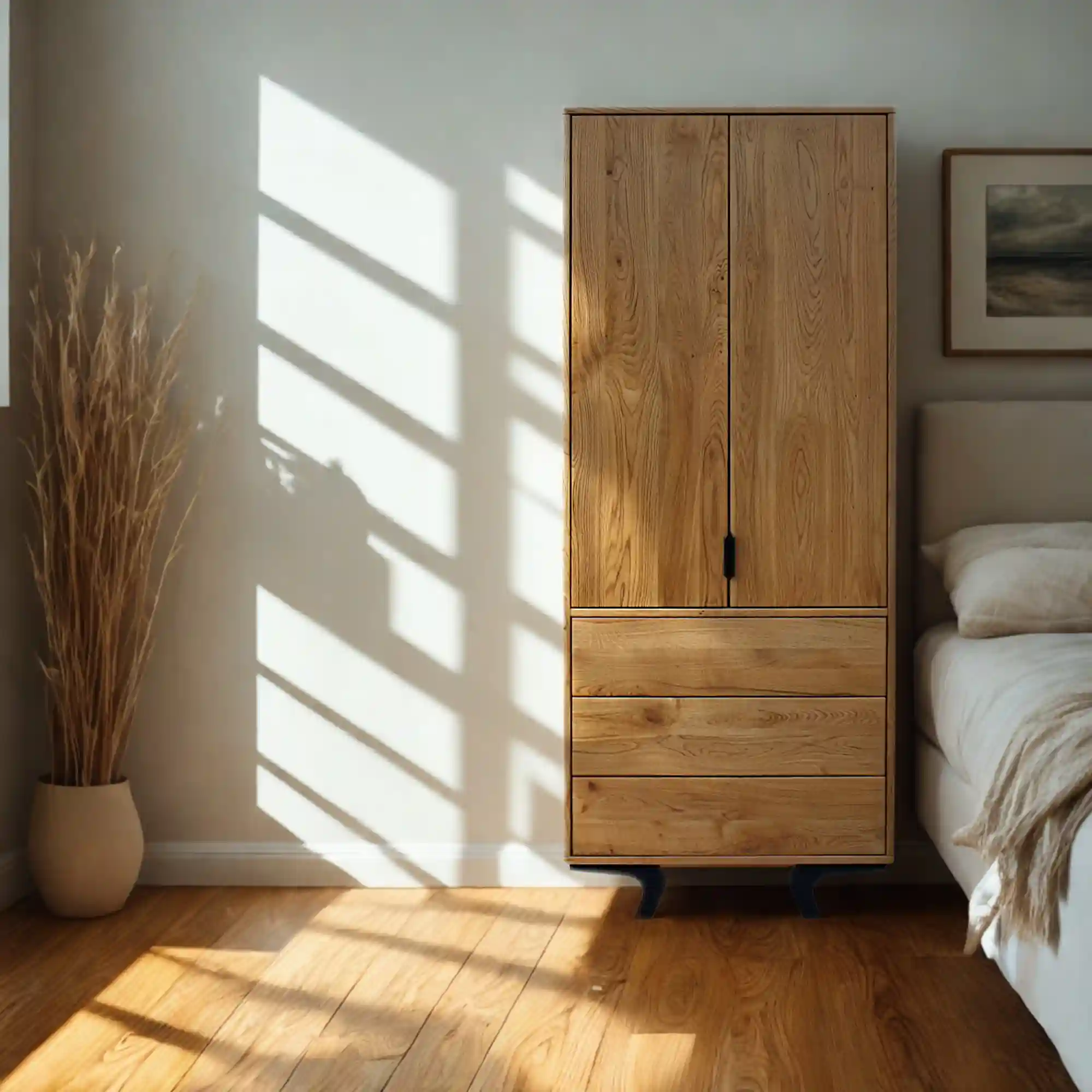 Eichenmöbel der Marke RaWood sind ein Garant für Qualität, präzise Verarbeitung und zeitloses Design. Der Schrank VITA eignet sich hervorragend für moderne Loft-Räume, passt aber ebenso gut zu klassischen Einrichtungen. Im Schlafzimmer bietet er Platz für Alltagskleidung, im Flur erleichtert er die Aufbewahrung von Jacken und Accessoires und im Jugendzimmer sorgt er für einen praktischen Platz für die Garderobe. Beachtenswert ist auch der Schrank AXEL mit gefrästen Fronten. Dieses Modell zeichnet sich durch seine dezente Dekorativität aus und verfügt ebenfalls über eine Kleiderstange. Beide Modelle sind Beispiele dafür, wie Möbel aus massiver Eiche Funktionalität und Ästhetik verbinden.