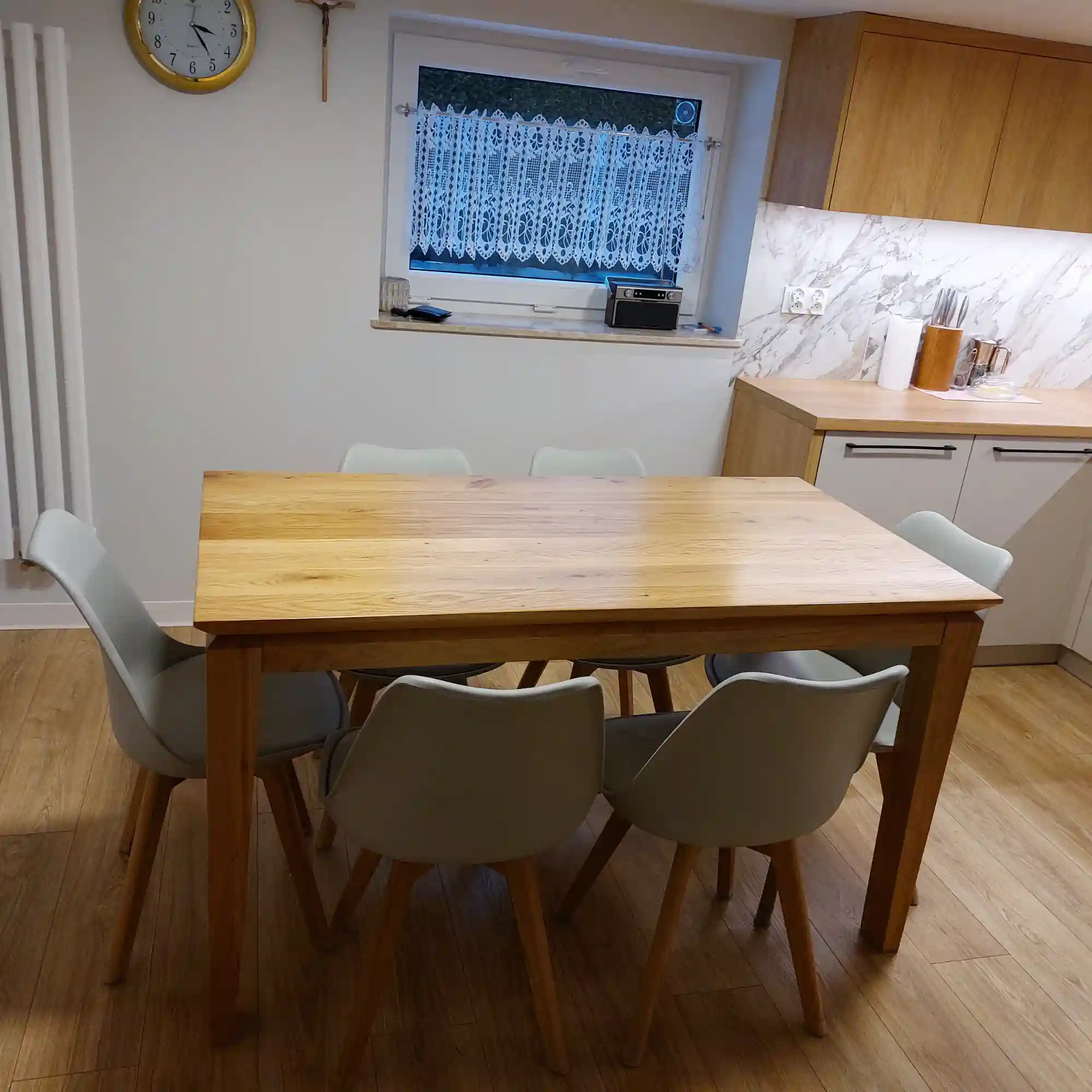 Es ist möglich, die Farbe des Holzes zu ändern, so dass Sie jeden unserer Tische mit Ihren anderen Möbeln abgleichen können. Sie können auch Holzmuster, bestellen, mit denen Sie Farben live sehen und vergleichen können. Eichentisch direkt vom polnischen Möbelhersteller ist ein Garant für Möbelqualität und perfekte Verarbeitung. Bei uns können Sie die Möbel nach Ihren Vorstellungen anpassen. Massivholztische füllen perfekt das atmosphärische Interieur des Esszimmers und des Wohnzimmers aus. Jeder Gast wird sicherlich auf Ihren Designertisch achten. Dank des handgefertigten Holzes ist Ihnen garantiert, dass Ihr Möbel einzigartig ist. Keine zwei Tische sind gleich, so dass sie immer originell und einzigartig sein werden.