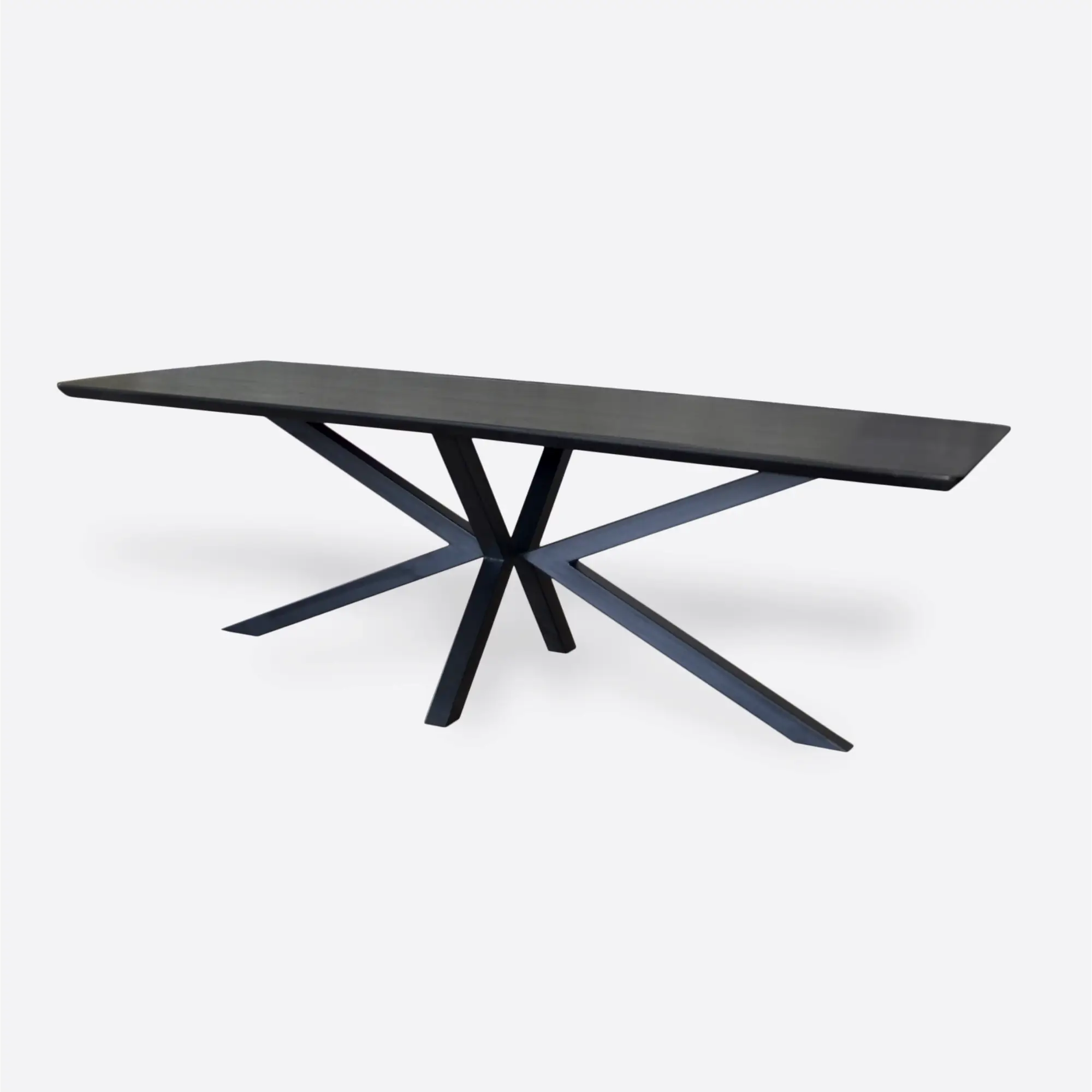 Esstisch auf Metallbeinen VERDA ist idealer Tischvorschlag für Wohnungen im Industrie-, Loft- und modernen Stil. Tischplatte besteht aus massivem Eichenholz mit einer Stärke von 4cm. Sein ursprüngliches Aussehen, dank der Schweizer Hinterschneidung und der abgerundeten Ecken, zieht alle Blicke auf sich. Darüber hinaus passen die originellen und Designer-Tischbeine den modernen Eichentisch VERDA in viele Einrichtungsstile. Stahlfuß für Tisch, die sogenannte Spinne, wurde mit einer Pulverbeschichtung in Schwarz geschützt. Eichentisch im industriellen Stil mit Metallbeinen sieht elegant und einzigartig aus. Unsere modernen Eichentische fallen durch ihr originelles Design auf, sind aber auch komfortabel und werden viele Jahre dienen. Moderne industrielle Eichentisch VERDA eignet sich hervorragend für das Esszimmer, das Wohnzimmer sowie den Konferenzraum.