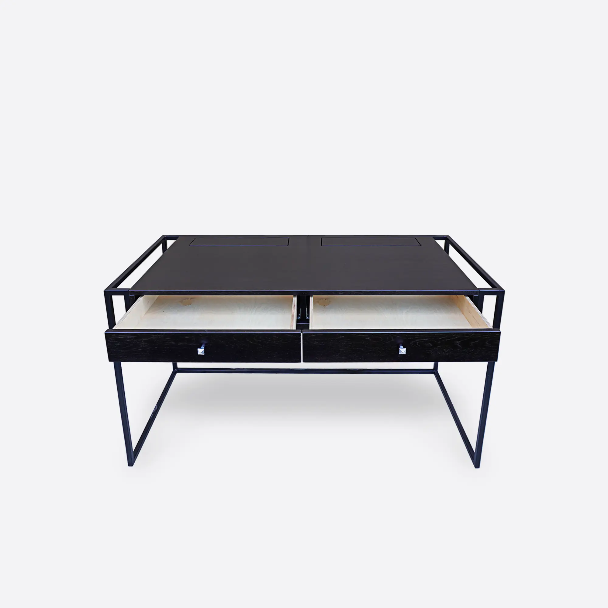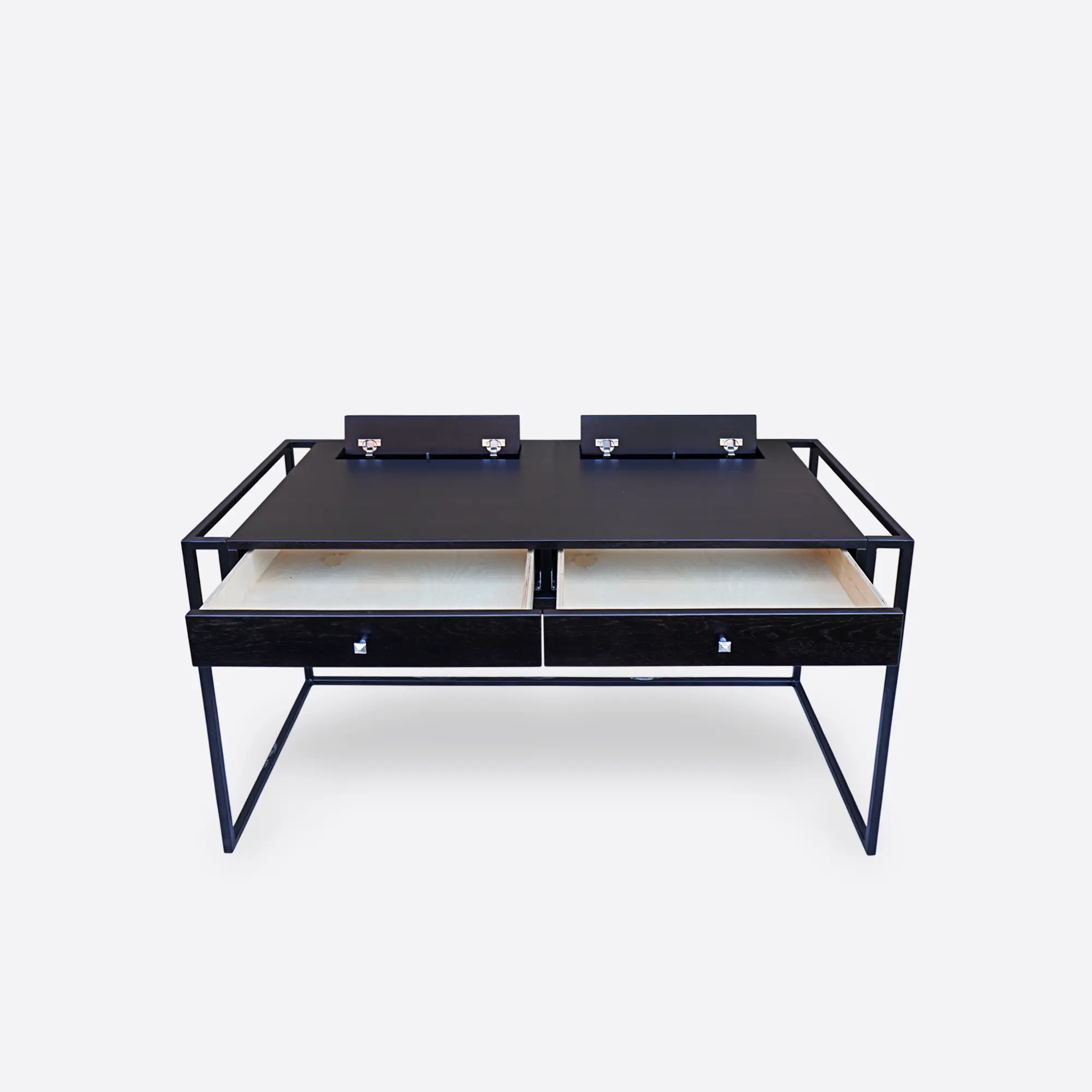 Industrieller Eichenschreibtisch KING für Liebhaber von Minimalismus und industriellem Stil. Die schlichte Form des Schreibtisches mit Holztischplatte passt perfekt zu industriellen Kleingriffen und Metallgestell. Industrieschreibtisch ist aus natürlichem Eichenmassivholz gefertigt. Industrieschreibtisch KING zeichnet sich durch ein schönes und einzigartiges Aussehen aus, ist aber vor allem solide und langlebig und wirkt sich positiv auf unsere Gesundheit aus. Beine des Schreibtisches sind aus pulverbeschichtetem Stahl in Schwarz gefertigt. Die Pulverbeschichtung ist ein hervorragender Schutz, der eine lange Haltbarkeit gewährleistet. Um eine maximale Funktionalität der Oberfläche zu gewährleisten, verfügt der Loft-Schreibtisch KING über 2 Schubladen und zwei Ablagefächer in der Tischplatte. Industrieller Eichenschreibtisch KING ist eine perfekte Kombination aus Funktionalität und Einzigartigkeit.