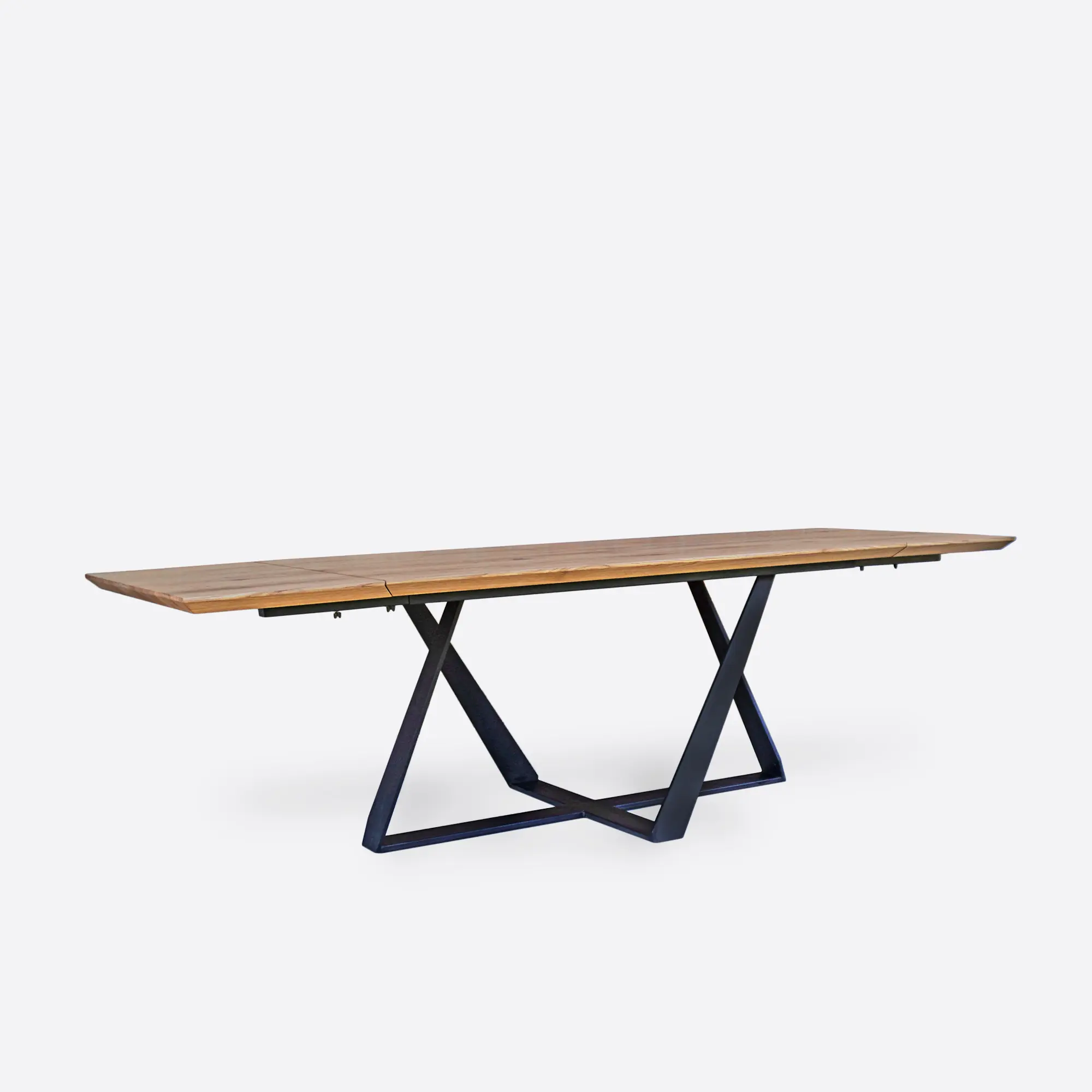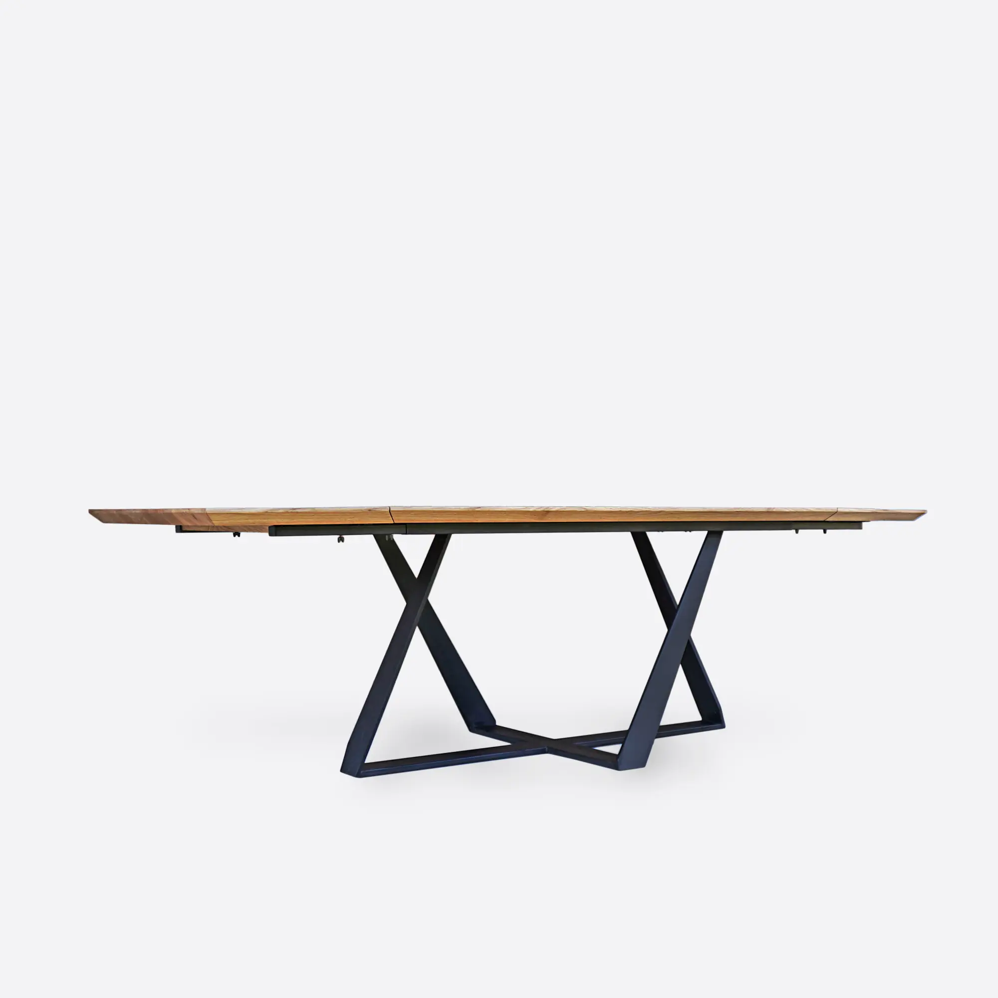 Möchten Sie, dass Ihr ausziehbarer Tisch mit Erweiterungen zu Ihrem Interieur passt? Als Möbelhersteller passen wir den ausziehbaren Eichentisch hinsichtlich der Maße und der Farbe an. Wenn in Ihrem Zuhause ein kleiner ausziehbarer Tisch Platz findet, ist das kein Problem! Bitte senden Sie uns Ihre gewünschten Maße über das “Anpassen Sie den Tisch”-Formular, und wir werden Ihnen gerne ein Angebot erstellen. Denken Sie auch daran, dass der ausziehbare Tisch farblich zum Rest des Raums passen sollte. Moderne ausziehbare Tische mit natürlicher Tischplatte und schwarzem Stahl sind die am häufigsten gewählte Option. Verleihen Sie Ihrem ausziehbaren Tisch einen Loft-Charakter, indem Sie die Farbe der Tischplatte ändern. Bei der Auswahl des richtigen Lackes oder Öls werden Ihnen Holzmuster sicherlich helfen. Wir fertigen auch individuelle Möbelprojekte an. Wenn Sie von einem ausziehbaren runden Tisch oder einem Küchentisch mit ungewöhnlichen Abmessungen träumen, senden Sie uns Ihre Inspirationen zusammen mit den Maßen. Als Möbelhersteller setzen wir auf individuelle Lösungen, damit jeder moderne oder runde ausziehbare Tisch genau das ist, was Sie brauchen.