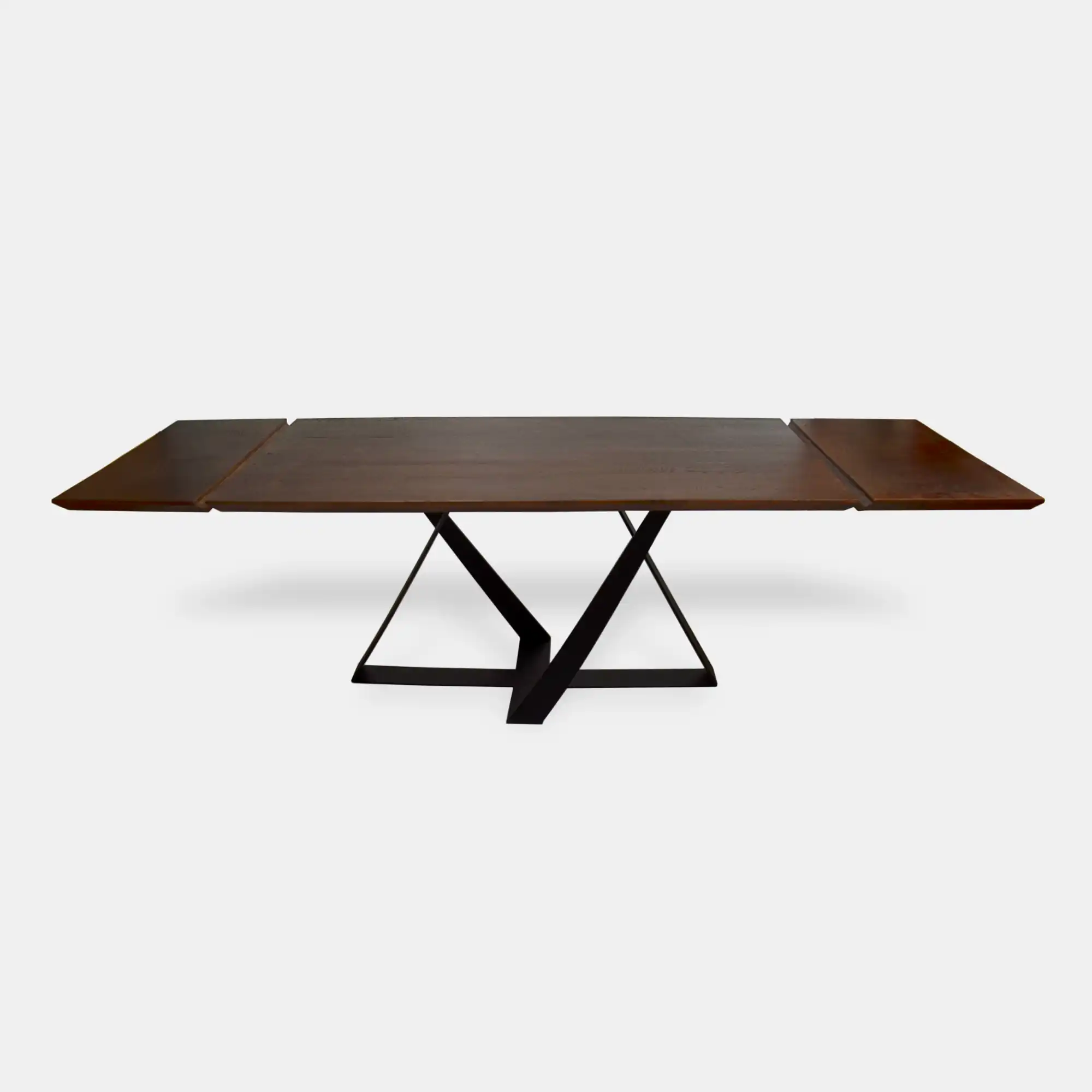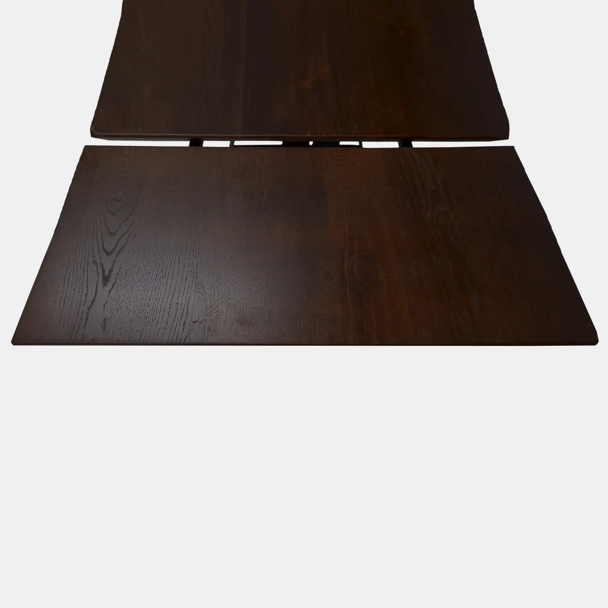 Fotos des Tisches mit Erweiterungen zeigen die Tischplatte in der Farbe “Wenge”