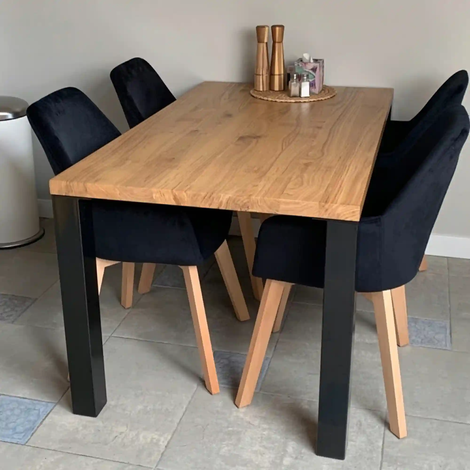 Ein Industrietisch ist ein einzigartiger und Designertisch. Industrielle Eichentische werden im Esszimmer, in der Küche oder im Wohnzimmer gut aussehen. Unser Industrietisch hat eine Platte aus Eiche natur. Eichenholz gibt uns die Garantie, zwei wichtige Funktionen zu erfüllen: funktional und ästhetisch. Die Tischplatte ist eine wunderschön sichtbare Struktur und Textur aus Holz, die die Aufmerksamkeit jedes Gastes auf sich ziehen wird. Der Industrietisch passt in modernen, industriellen oder Loft-Stil in die Innenräume. Die Tischplatte aus Holz ist auf massiven Stahlbeinen montiert, schwarz pulverbeschichtet. Der Industrietisch zeichnet sich durch eine massive, schwere und solide Konstruktion aus, die eine unglaubliche Haltbarkeit garantiert. Alle unsere Tische wurden mit großer Sorgfalt hergestellt, was das Ergebnis der harten Arbeit unserer Tischler ist. LUKKA Industrietisch ist eine Kombination aus der Schönheit des natürlichen Materials Eichenholz mit einem modernen Finish in Form von Metallbeinen.