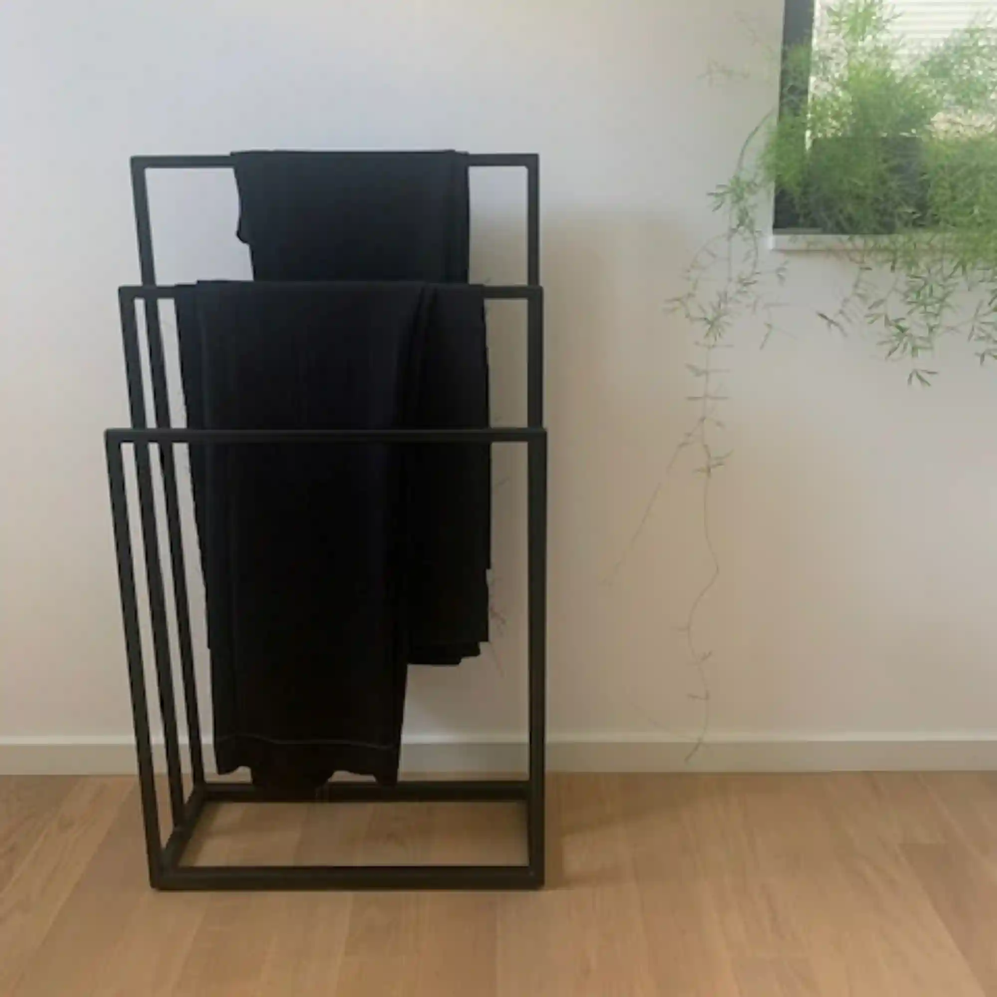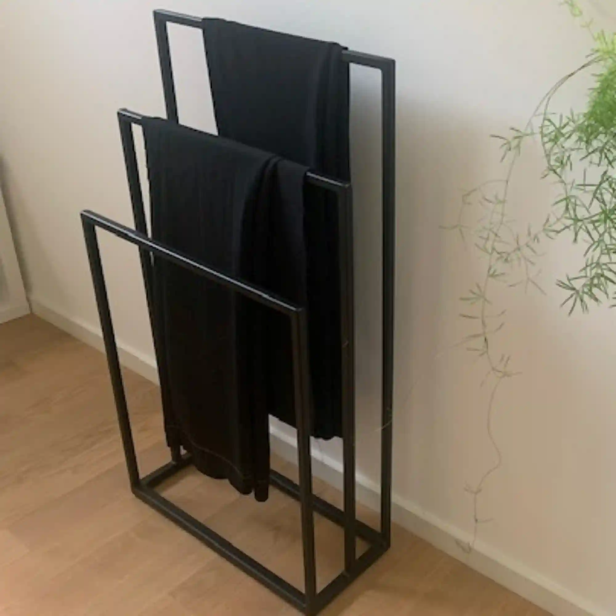 Loft modern Handtuchhalter aus Metall passt perfekt zu jedem Badezimmer. Loft Handtuchständer besteht aus pulverbeschichtetem Stahl in schwarzer Farbe. Metall Handtuchhalter im industriellen loft Stil ist handgefertigt mit Sorgfalt für jedes Detail. Metall Handtuchhalter hat spezielle Kunststoff Möbelfüße, die verhindern, dass sich der Handtuchhalter fortbewegt und die Fliesen zerkratzt. Industrielle Handtuchständer hat drei Arme in Höhe: 60 cm, 75 cm, 90 cm, so können Handtücher frei aufgehängt werden. Räume zwischen den Arme sorgen für schnelle Trocknung der Handtücher. Modernes Design und hervorragendes Ausführung machen den Handtuchhalter zu einzigartigen und originellen Dekor jedes Badezimmers. Industrielle Handtuchhalter nimmt nicht viel Platz ein, dadurch ist es auch für kleine Badezimmer ideal. Metall Handtuchständer passt perfekt zu den Innenräumen im industriellen, klassischen und skandinavischen Stil. Loft modern Handtuchhalter ist universelle Ergänzung zu jedem Interieur, die extrem funktional und praktisch ist.