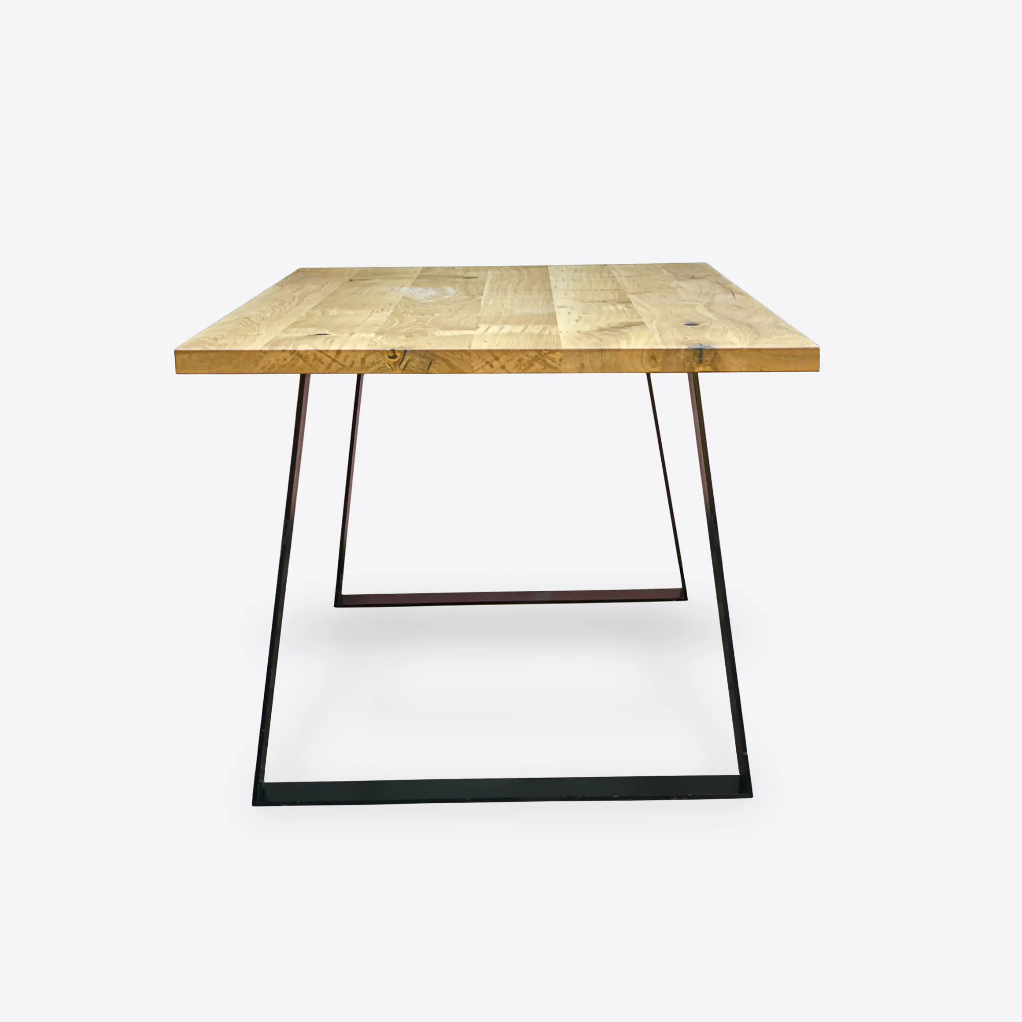 Eichenholztisch mit massiver Platte und Metallgestell SNAKE