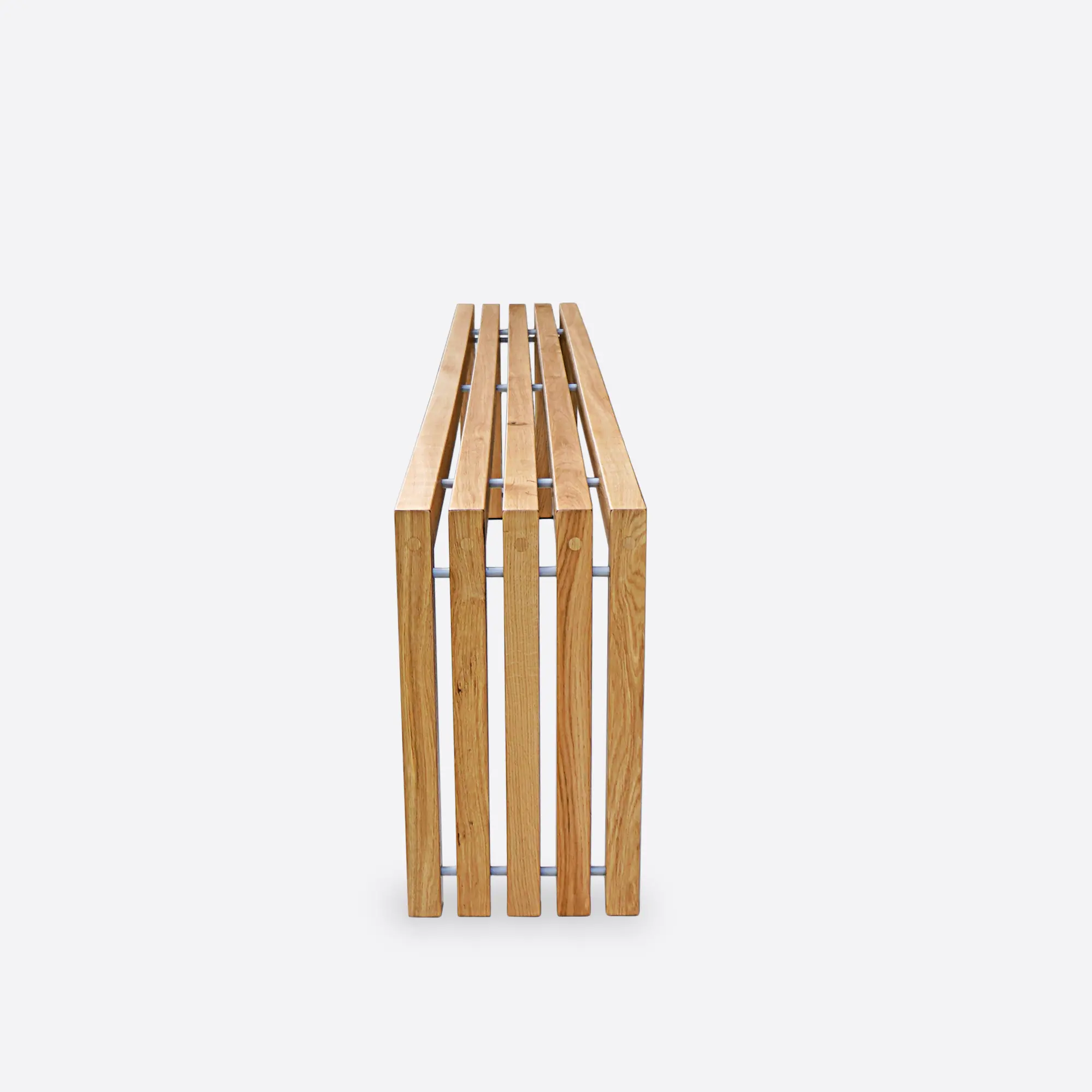 Die minimalistische Eichenbank CAMERON ist perfekt für Liebhaber schlichten Designs. Diese handgefertigte Bank aus massivem Eichenholz besticht durch ihr minimalistisches Design und ihre geometrische Form. Ihr einzigartiger Charakter wird durch präzise platzierte Latten unterstrichen, die eine leichte und dennoch stabile Form schaffen.