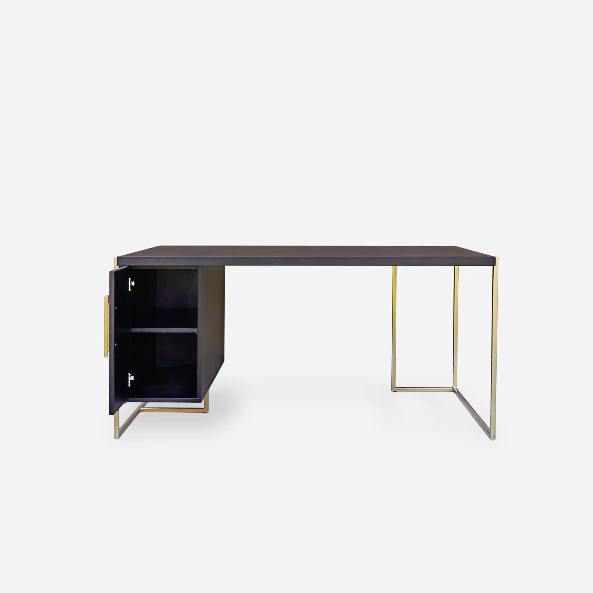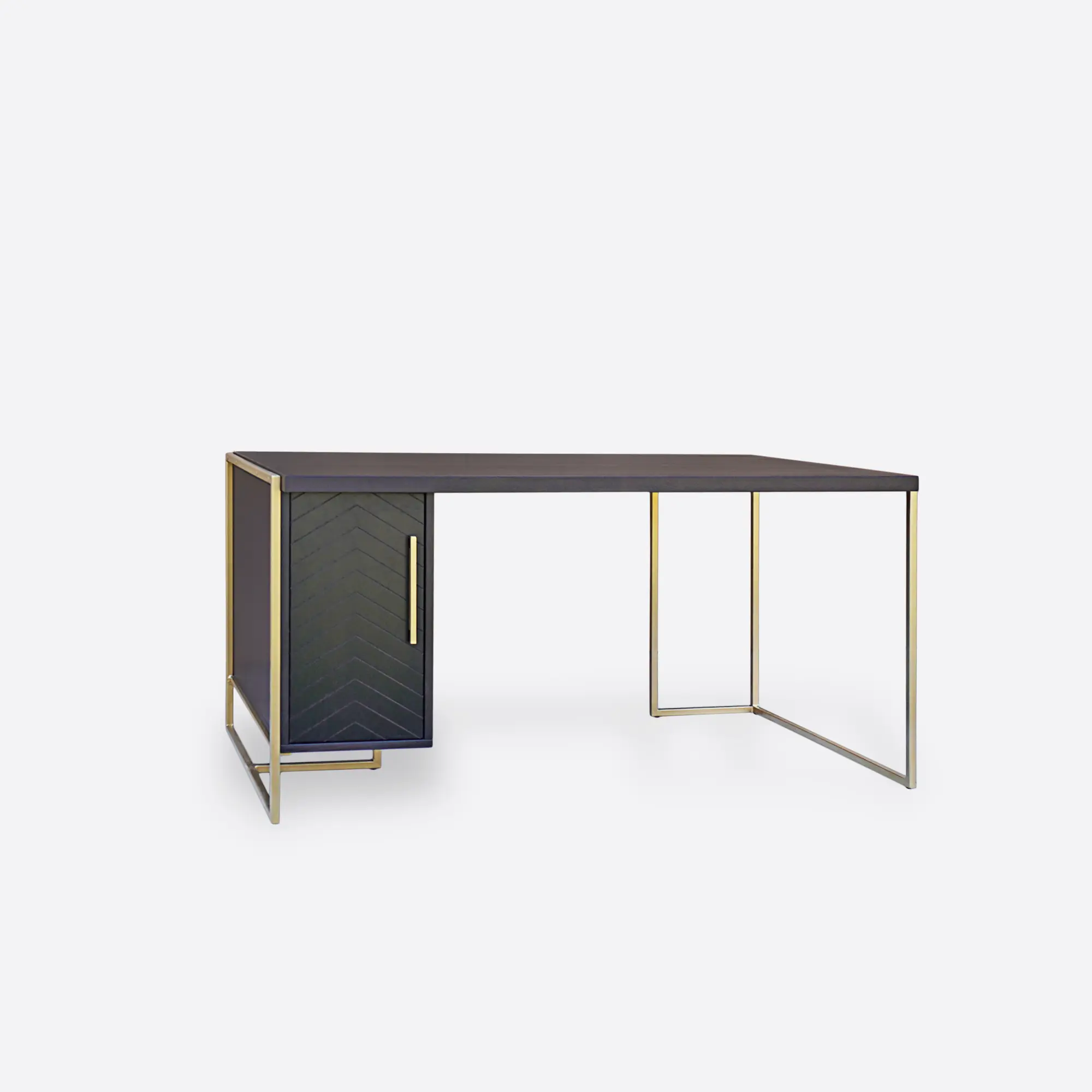 Der moderne Eichenholz-Schreibtisch CARIN ist ein zeitloses Möbelstück, das sowohl im Zuhause als auch im Büro gut funktioniert. Dieser elegante Holzschreibtisch ist aus natürlichem Eichenholz gefertigt, das robust, langlebig und schön ist. Die Beine und der Griff bestehen aus pulverbeschichtetem Stahl in einer goldenen Farbe. Die Pulverbeschichtung verleiht den Elementen aus Stahl Haltbarkeit, wodurch sie äußerst widerstandsfähig gegen verschiedene Einflüsse sind. Daher garantieren unsere Büromöbel aus hochwertigen Materialien Solidität und Langlebigkeit. Großer moderner Holzschreibtisch mit Metallbeinen verfügt über einen großen Container mit einem Regal im Inneren. Dieser stilvolle Holzschreibtisch besitzt eine funktionale und vielseitige Form, die es ermöglicht, den Container entweder links oder rechts zu montieren, je nach Wahl des Kunden. Das moderne Holzschreibtisch CARIN, das auf Bestellung gefertigt wird, bietet einen idealen und persönlichen Arbeitsbereich sowohl für das Heimbüro als auch für das Arbeitszimmer.